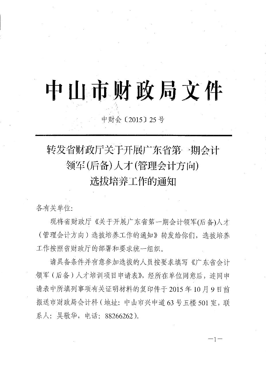 转发省财政厅关于开展广东省第一期会计领军(后备)人才(管理会计方向)选拔培养工作的通知