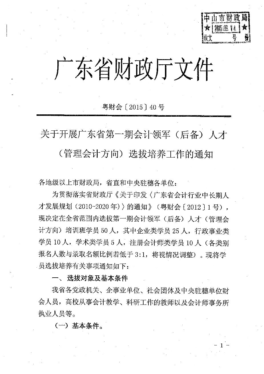 转发省财政厅关于开展广东省第一期会计领军(后备)人才(管理会计方向)选拔培养工作的通知(已失效)