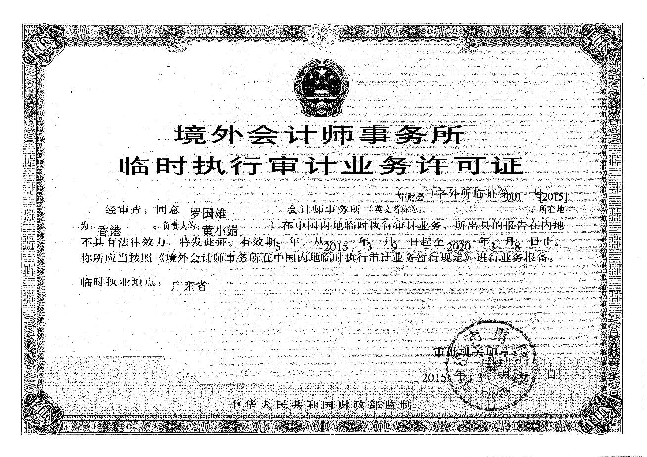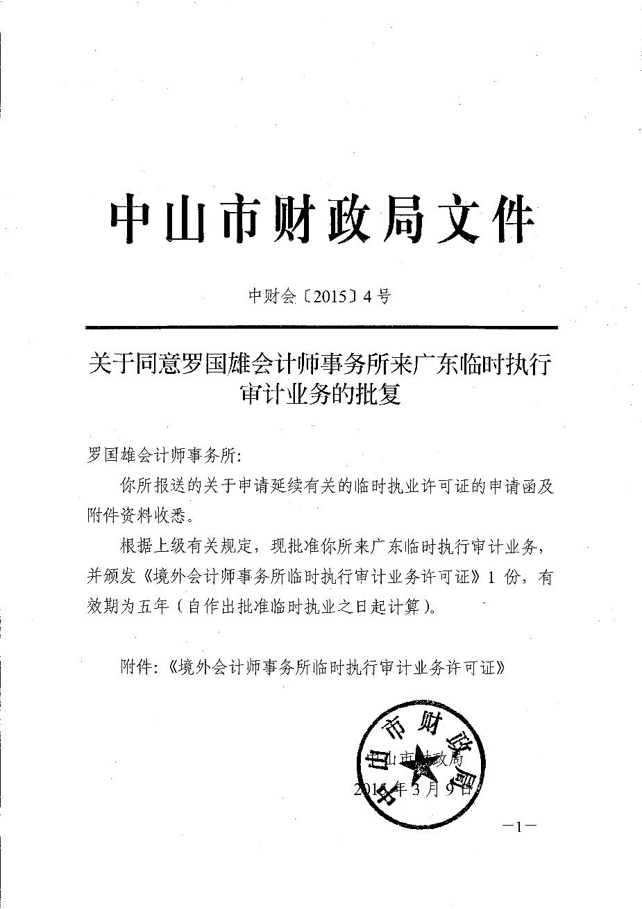 关于同意罗国雄会计师事务所来广东临时执行审计业务的批复