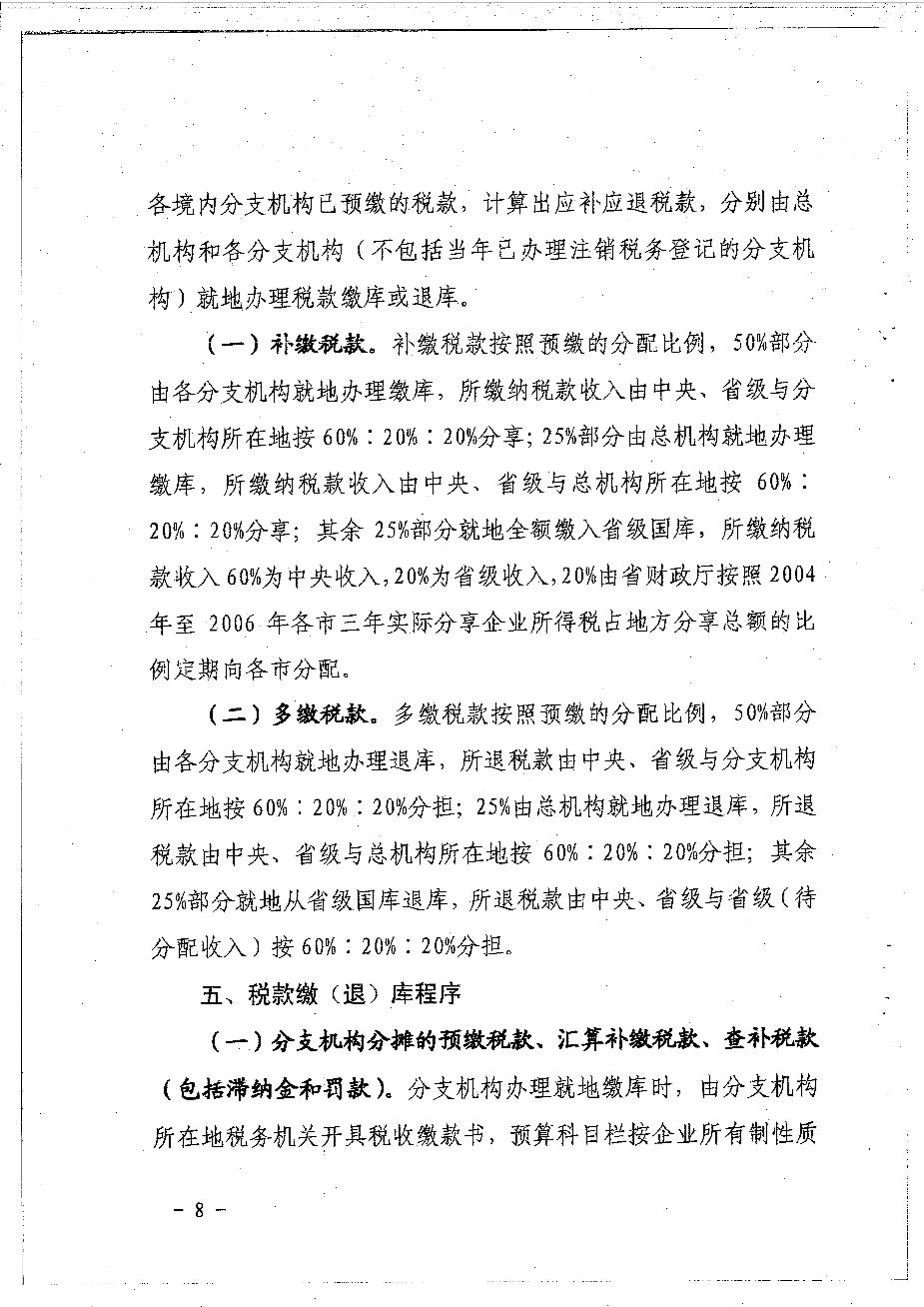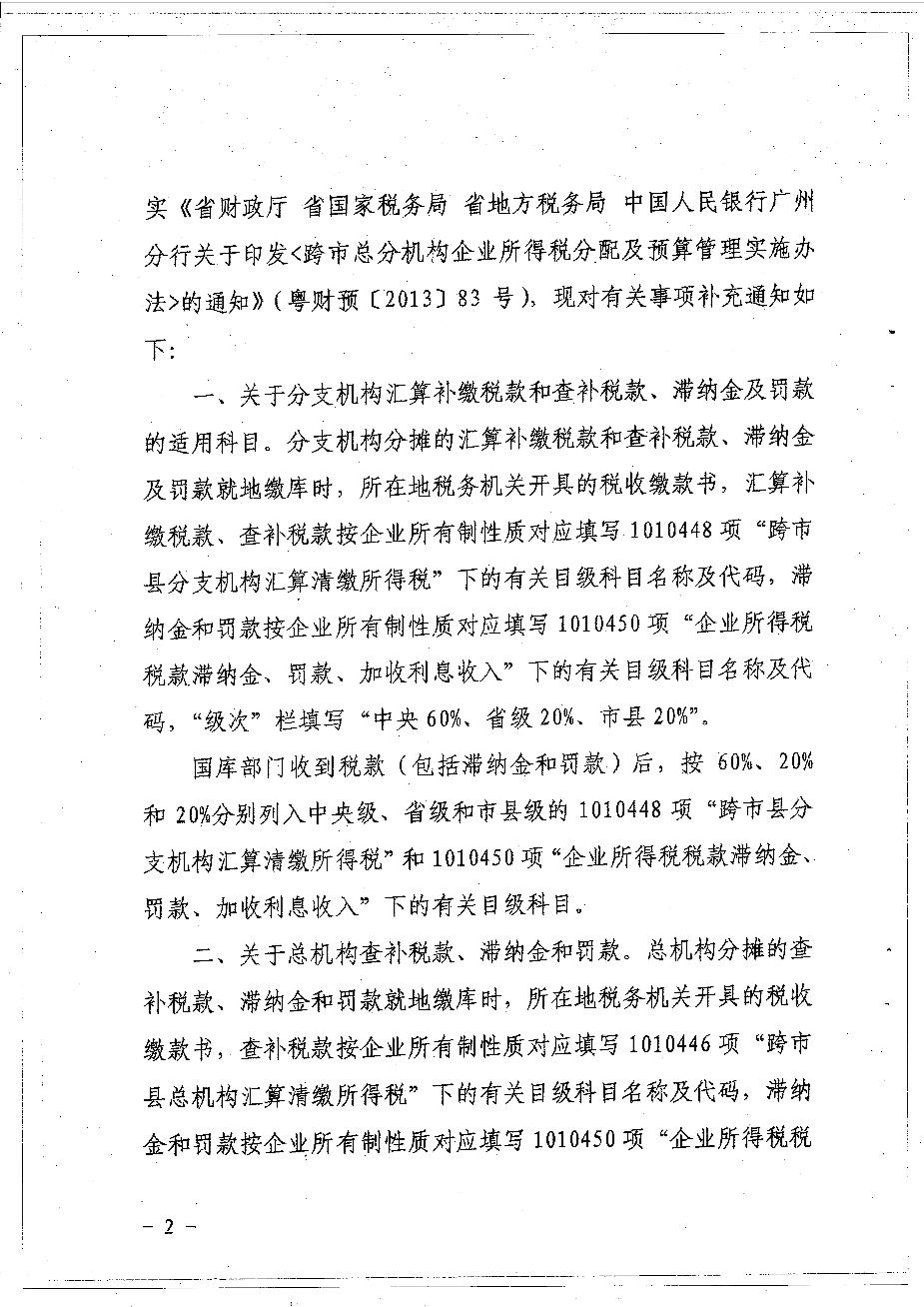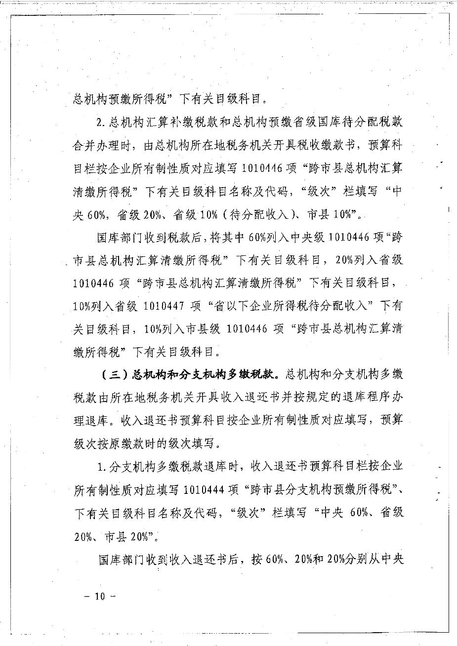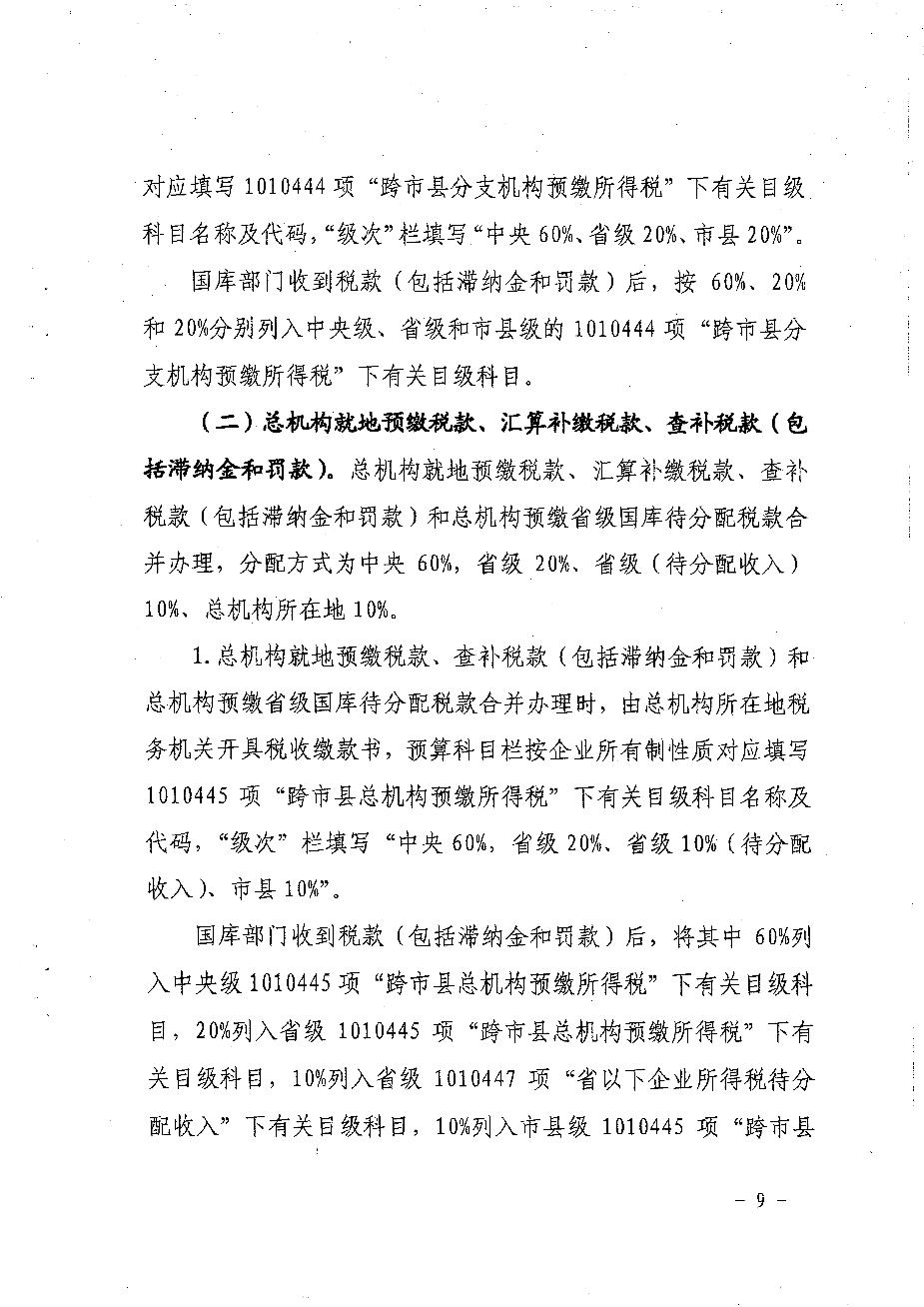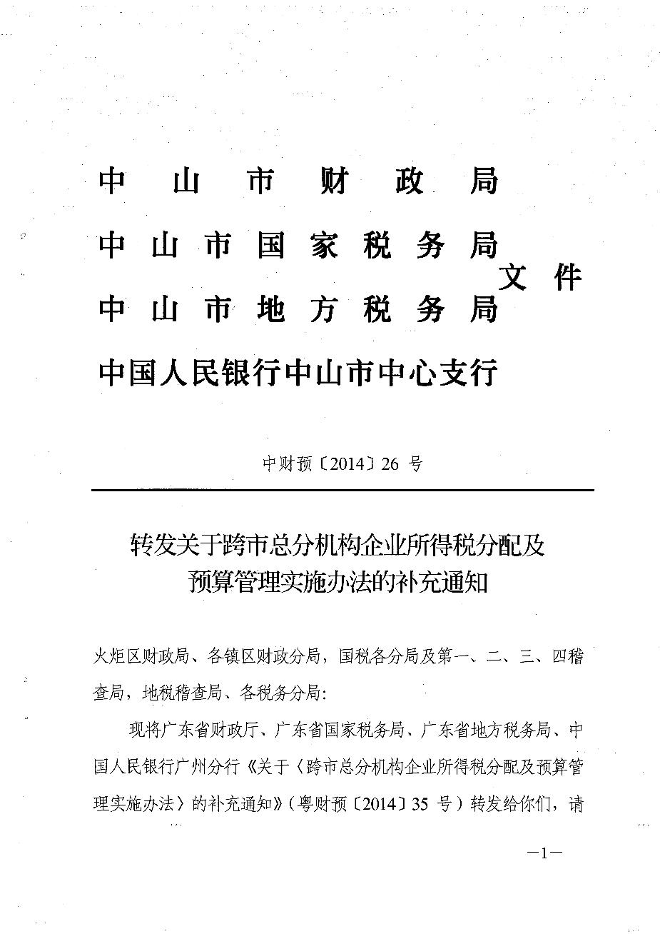 转发关于跨市总分机构企业所得税分配及预算管理实施办法的补充通知