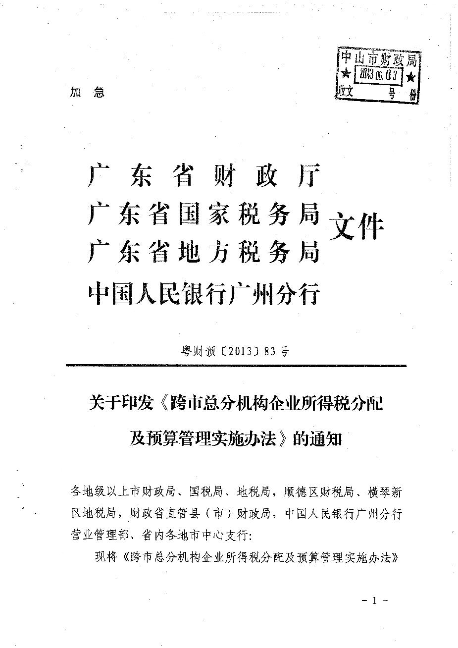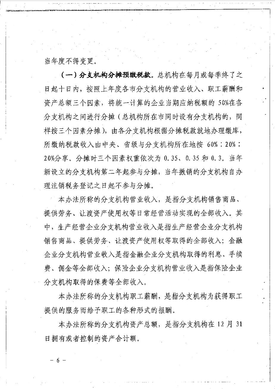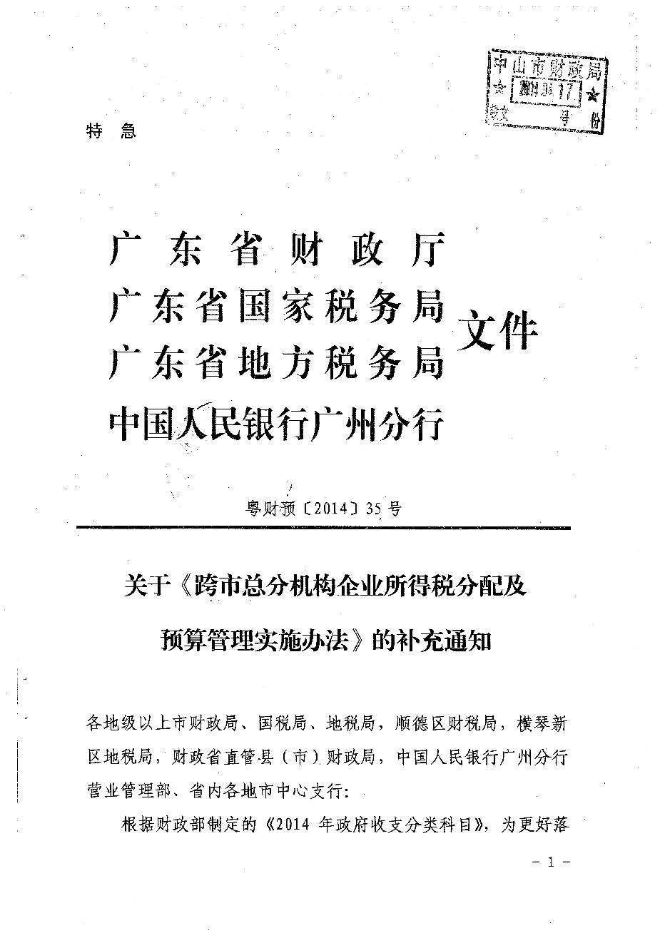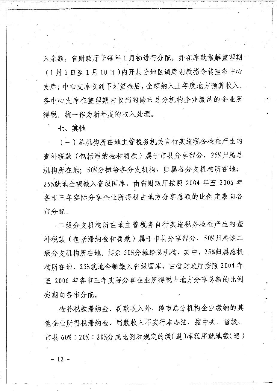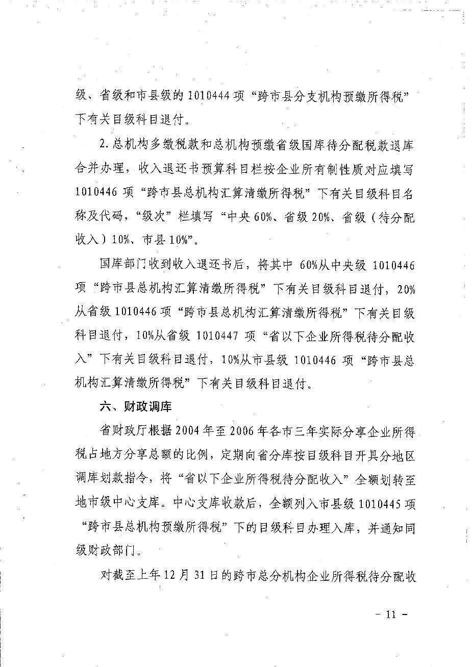 转发关于跨市总分机构企业所得税分配及预算管理实施办法的补充通知
